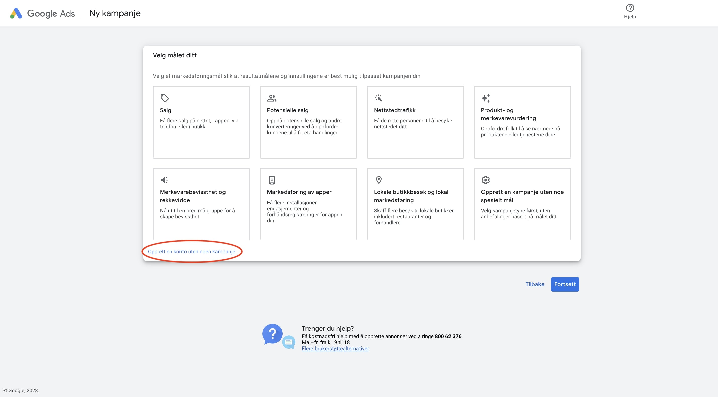 I dette tilfellet skal vi sette opp en søkekampanje, som gjør at vi kan vise annonser i Google Søk, når noen søker etter søkeordene som vi har funnet.