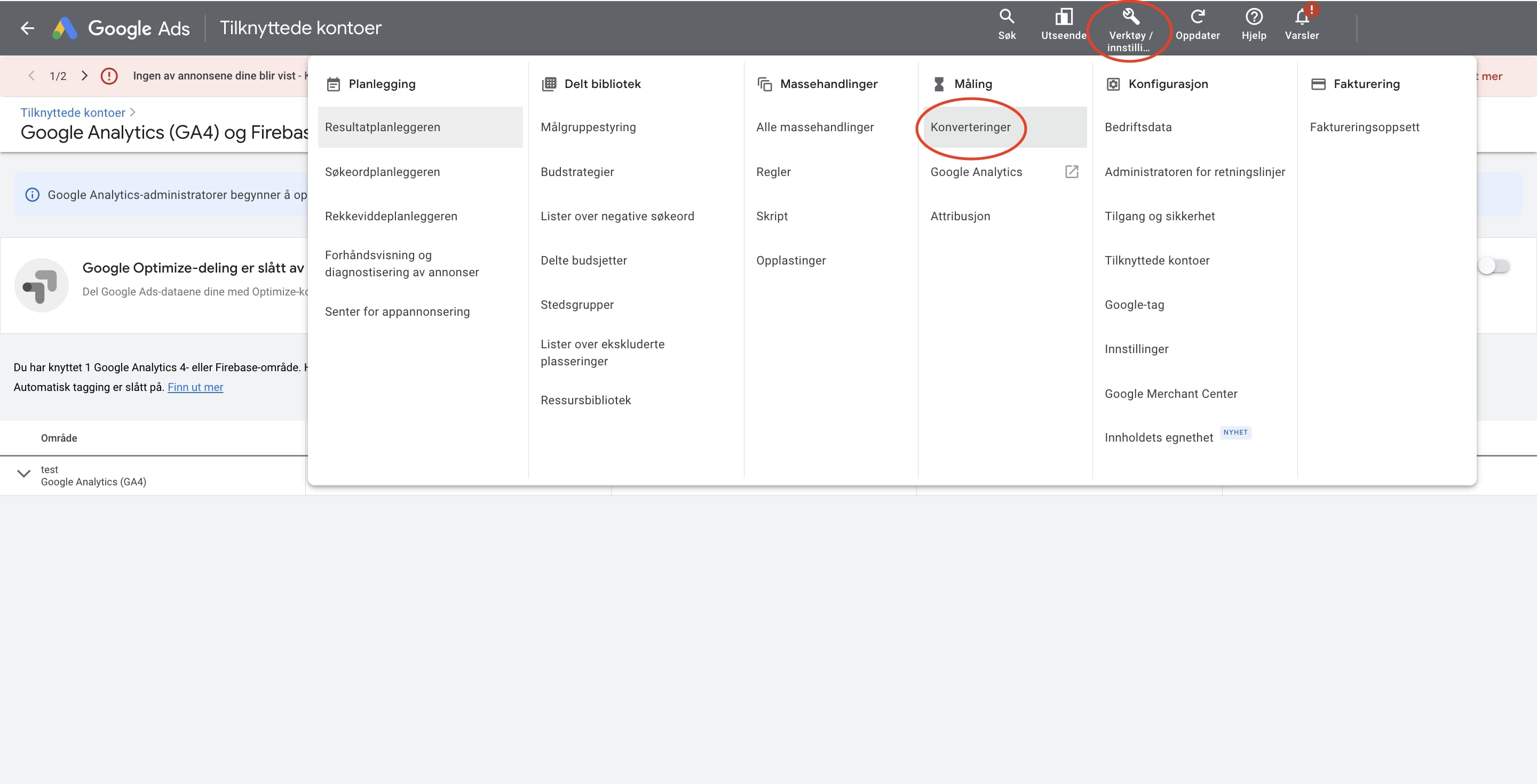 2.1 Koble opp Google Ads mot Google Analytics